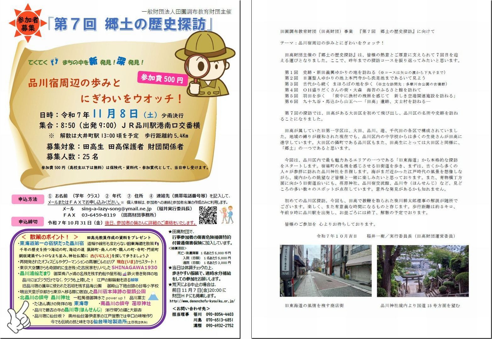 今年も「田園調布教育財団(以下田高財団)」主催の「郷土の歴史探訪(街歩きのイベント)」が開催されます。